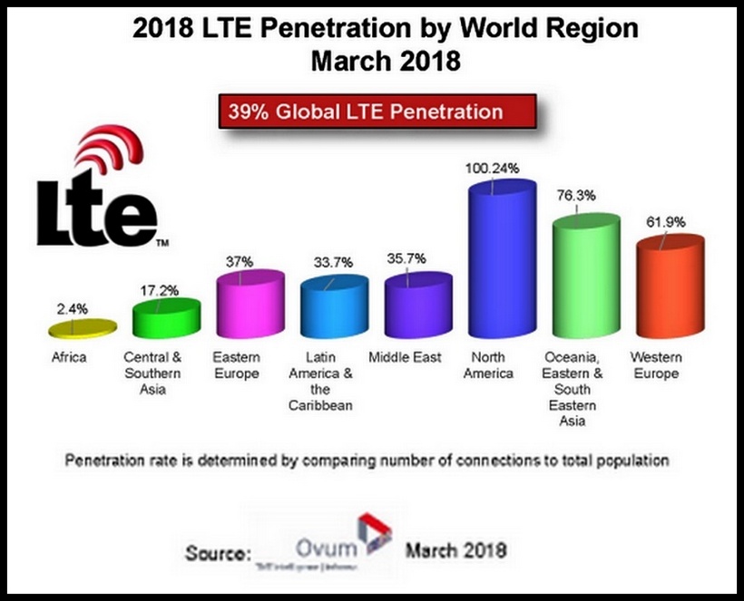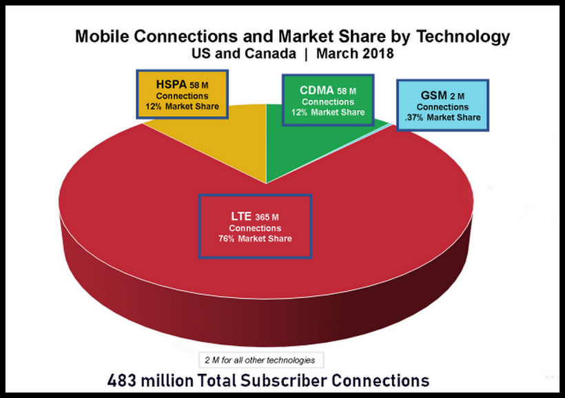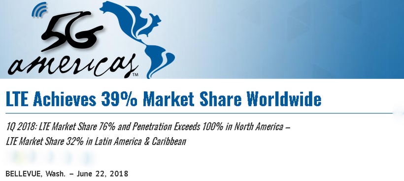 LTE Achieves 39% Market Share Worldwide, 76% in North America (March 2018) ...
