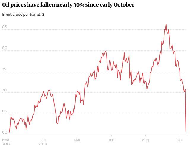 The latest wave of energy market selling comes amid escalating concerns about an increase in global supply and a slowdown in economic growth.OPEC and non-OPEC members meeting in Vienna on Dec. 6 are expected to start curtailing output.The value of a barrel of oil has tumbled about 20 percent this month, adding to a seven-week streak of consecutive losses.