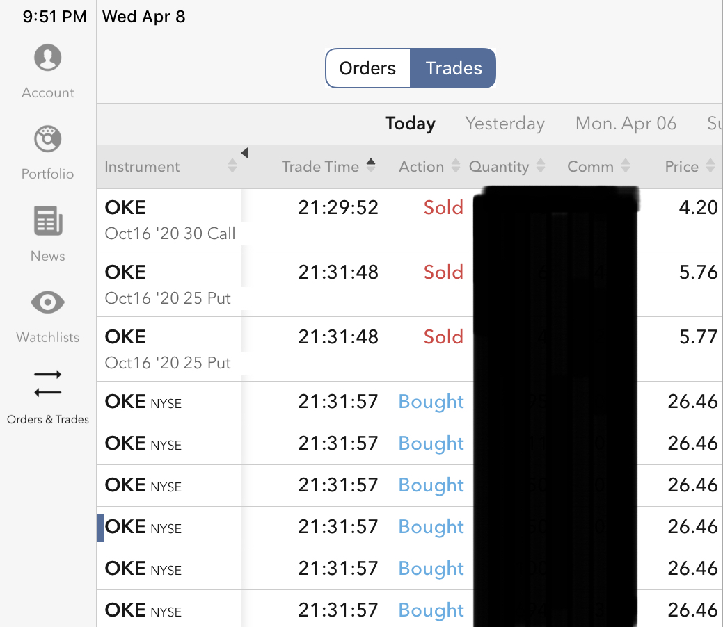 (1) Added to short puts w/r to OKE finance.yahoo.com