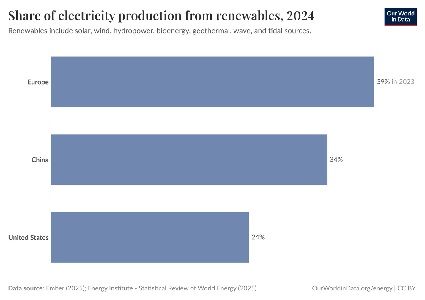 So let’s start with America, where politics has severely hobbled the transition to renewables compared to China and the E.U.