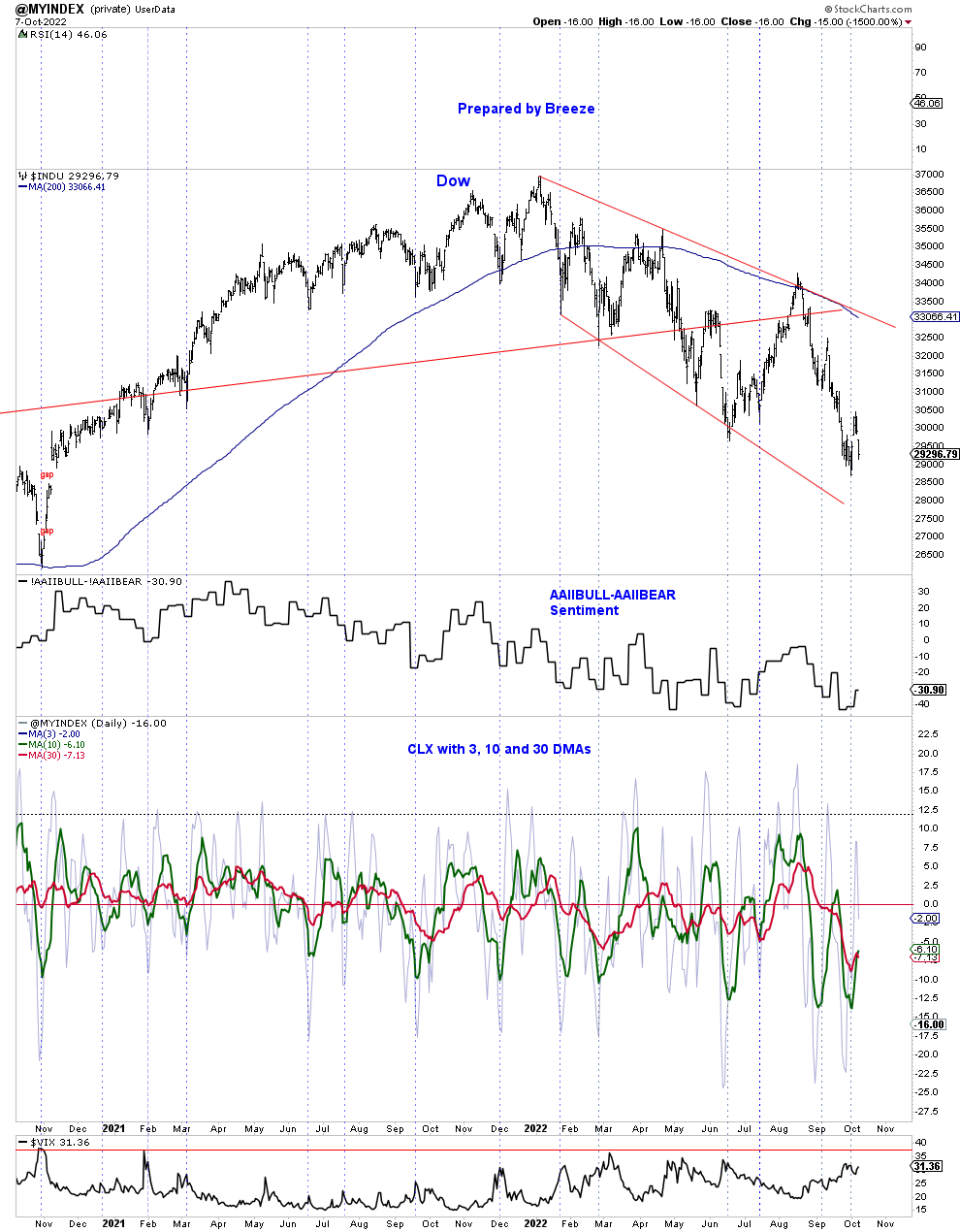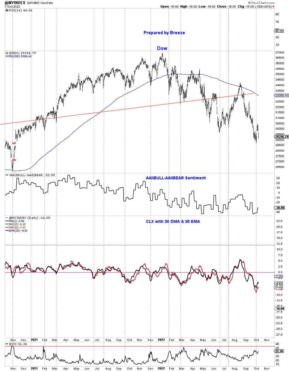 CLX Charts thru today's close. Island top on Dow. Breeze
