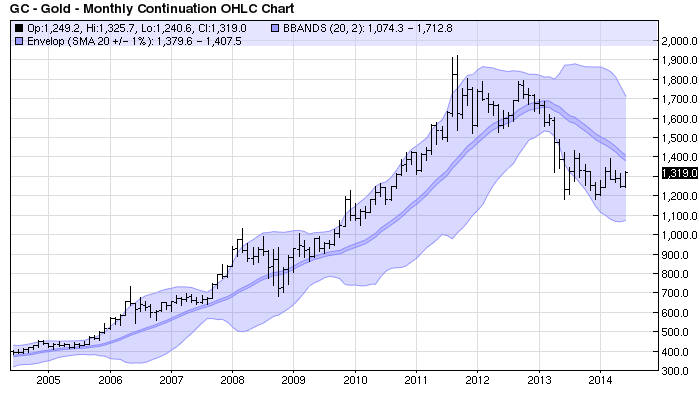 Looking at your longer term charts reminded me to take a look at the bigger picture on gold and one particular indicator we rarely look at are the Bollinger Bands and gold's bands sure look like they are gaining ground.