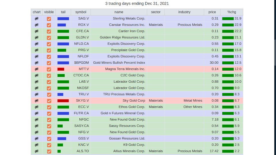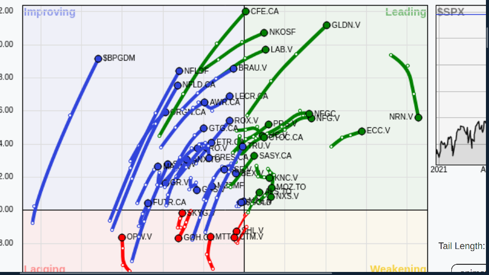 The picture on the daily RRG... is a bit different... Included 3 day tails and price performance on the list: