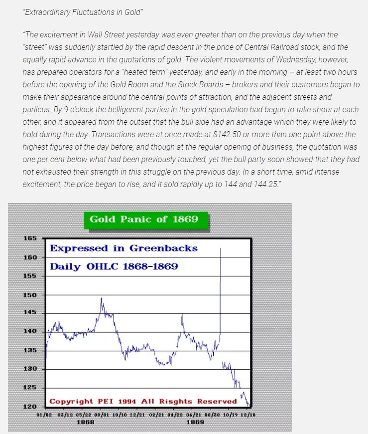 the gold price break as Jay Gould and James Fisk sought to corner the market in Gold and ultimately sell it to the US Government at vastly inflated prices.