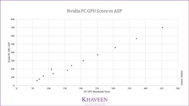 - We determine that pricing increase rather than shipment growth was the key to its PC GPU sales, and its pricing power was due to its performance improvements with every new.