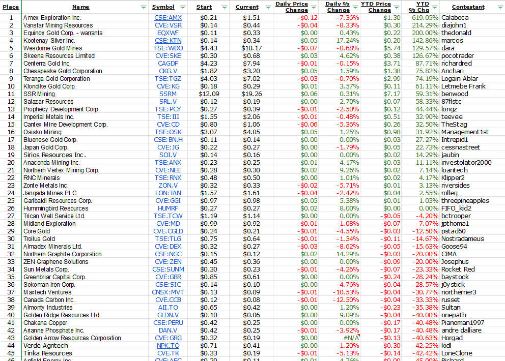 Gold/Mining/Energy : 2019 Stock Picking Contest