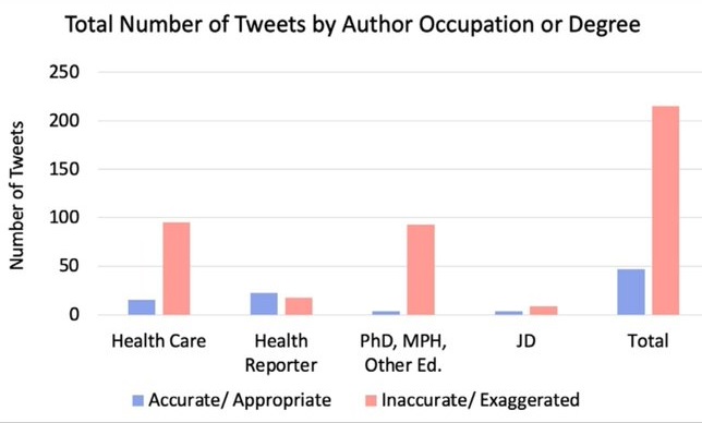 Public health experts on Twitter consistently exaggerated risks and infrequently reported accurate information