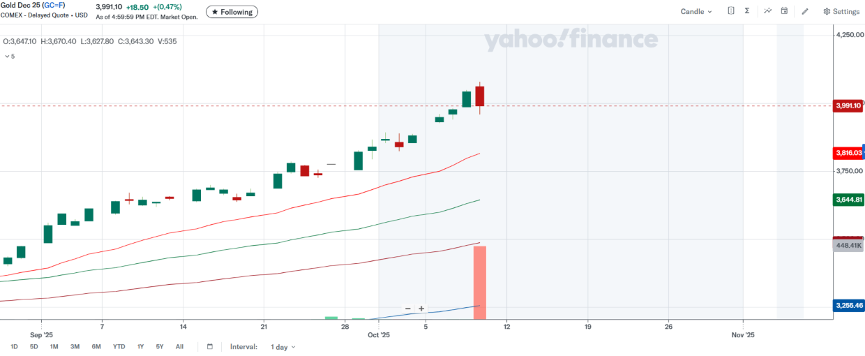 Today's MUX candlestick resembles a bearish shooting star but we need confirmation. So a bearish reversal will likely be confirmed if we get a strong red candle that closes below the shooting star’s low tomorrow, ($18.63) which in our case is just below the upper red line, its the pivot-point we've been watching. Consider both the gap and the pivot filled if MUX closes with a nice tall green candlestick tomorrow (10/10/25), and of course Friday's are not very good days for the miners, maybe this one will be ok, we wait and see!
