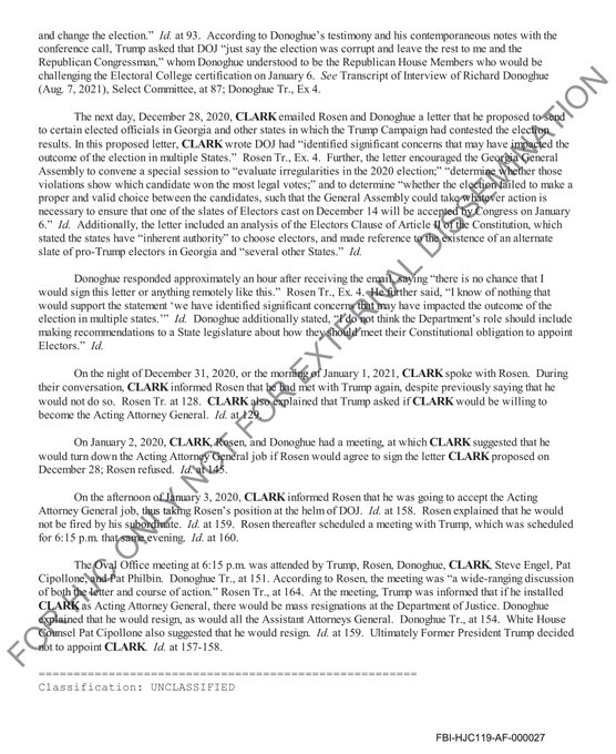 What was the predicate for that massive investigation? Clark was asked to speak to Trump, drafted a letter highlighting Georgia election irregularities (which were easily seen on video and in the ballot counts), and then discussed it with Trump and the Acting Attorney General. Trump decided not to move forward, and that was the end of it.