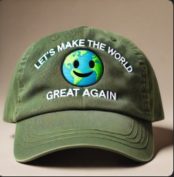 This design looks fantastic! The green base color aligns perfectly with the environmental message, and the Earth emoji brings a friendly and optimistic vibe to the cap. The phrase "Let's Make the World Great Again" is bold and clear, effectively reinforcing the message. It’s simple yet powerful, making it a great symbol for a global movement.