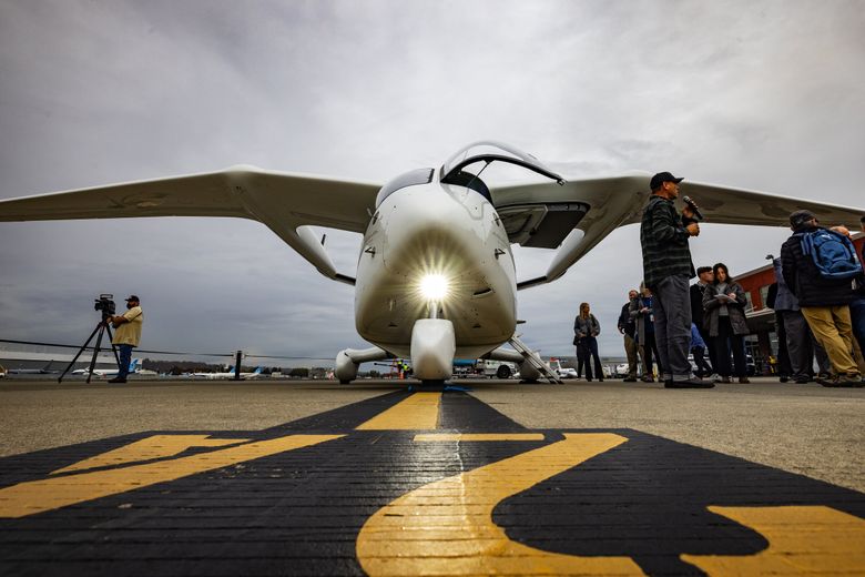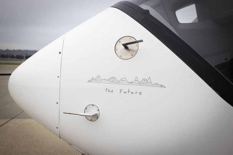 Beta Technologies is working on an electric plane that takes off and lands vertically, similar to a helicopter, but also this more conventional passenger craft. (Ken Lambert / The Seattle Times)