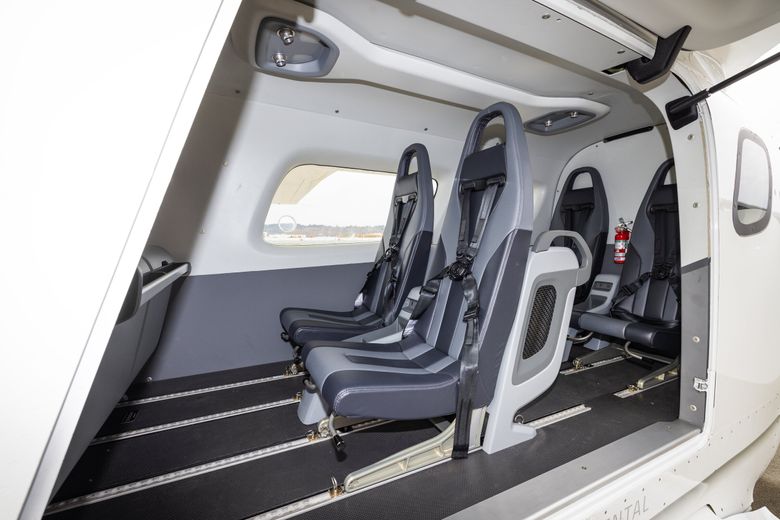 The all-electric aircraft that Beta brought to Seattle carries a pilot, five passengers and luggage. (Ken Lambert / The Seattle Times)
