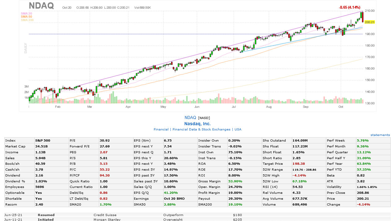 * sharp selloff today after NDAQ reported earnings on October 20 a.m.