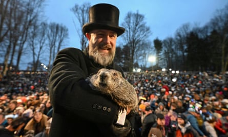 The buck-toothed mammal emerged from his nook in Gobbler’s Knob, Pennsylvania to crowds at the scene of the largest and best known Groundhog Day celebration in the United States.