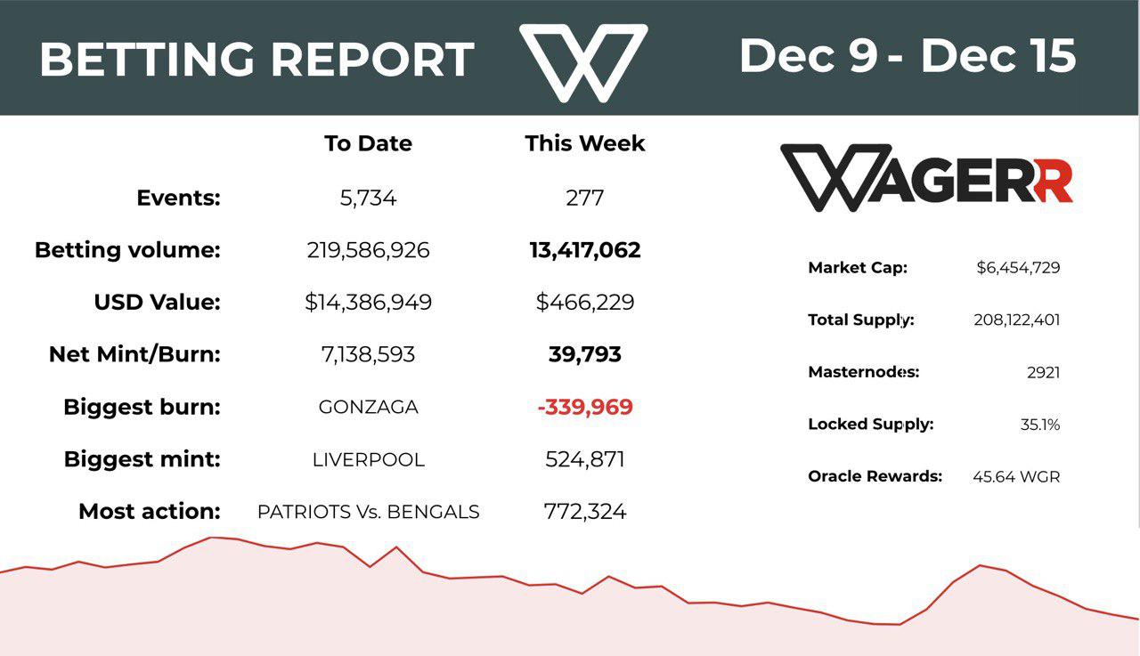Wagerr sports betting coin/chain is showing explosive growth in usage (bets). Strangely, the coin value is not appreciating, in fact it has been dropping lately. Hard to understand how wagerr has advanced far (great user interface betting wallet for PCs, Android lite wallet available for cell phones) and the price per coin is way below what it was when wagerr was just an idea.....