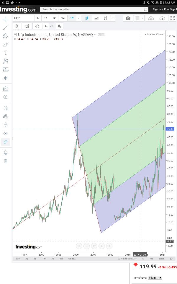 UFPI - There's always a bull market somewhere, and Triple Trades, will diligently work to make you aware of it. Continuing on the lumber theme, here is a near pure play on lumber for you equity traders that don't care to soil your hands with futures trading. A lay-up to the target - $120 /share