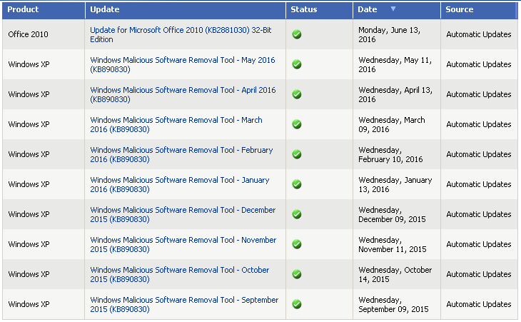 Tried Googling, not much out there. I do get malicious Software updates from MS once a month on XP.