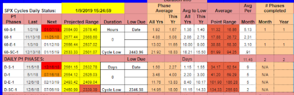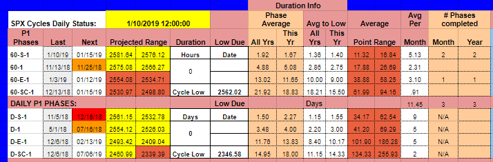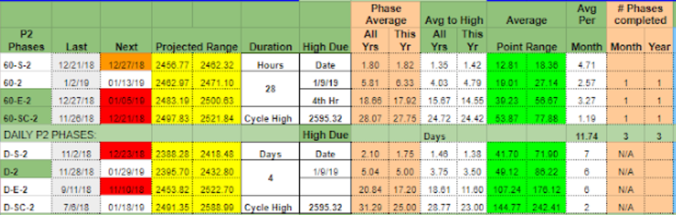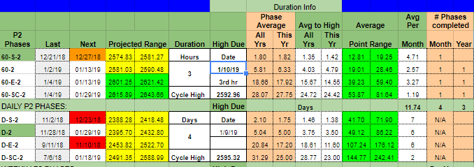 Notice that the 60-S-2 is currently confirmed, which is an extreme overdue phase. Right now the 60 min cycle high has exceeded the 60-2 phase projected range. The 60-2 could possibly be confirmed at the close of this hour, but it's looking right now that a 60-S-1 is more likely. My point here is the 60 min P2 phases are continuing to exceeded projected highs.