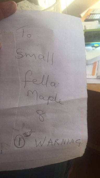 The next day, the man received a second warning, but this time it was typed.