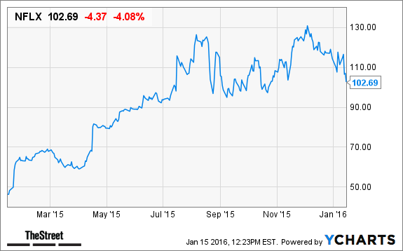 Netflix stock is declining 4.65% to $102.08 in early afternoon trading on Friday along with the overall market, which is being pressured by falling oil prices, weak U.S. retail sales and other global economic factors, according to Reuters.