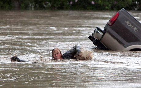 The images captured international attention and the pair was even deemed "a symbol of hope" amid the flood devastation by the British newspaper The Times.