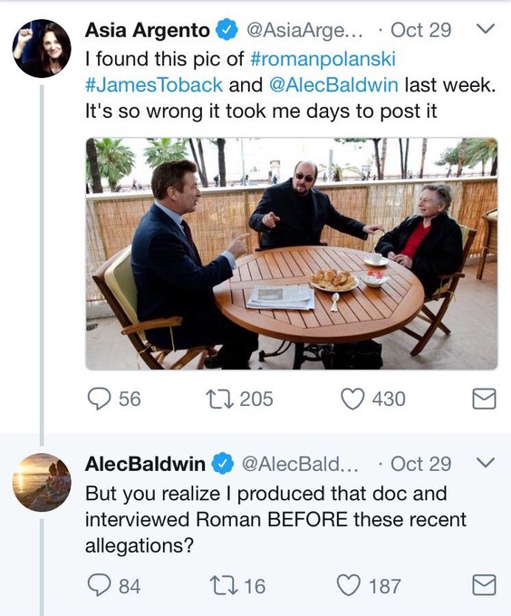 But it was AFTER Polanski had fled justice AFTER drugging & anally raping a child. Get in the bin, @AlecBaldwin. Stay strong, @AsiaArgento