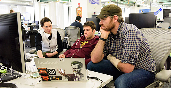 Facebook Department Managers sporting the currently fashionable urban grunge look. One even sporting a cast, likely from an injury while skateboarding. - You might wish to earn as much as they do.