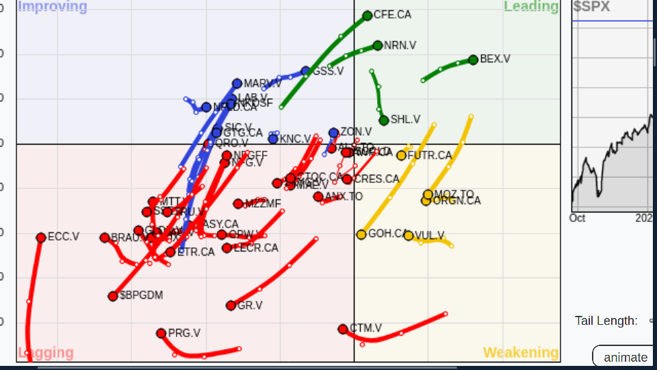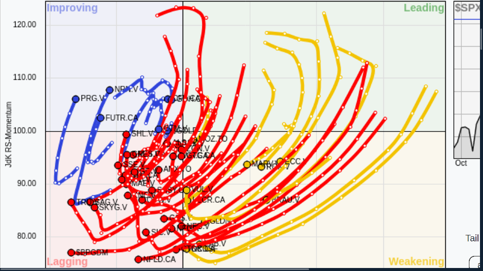 Here's September 27, 2021 on the Daily RRG, only 3 day tails to reduce the clutter: