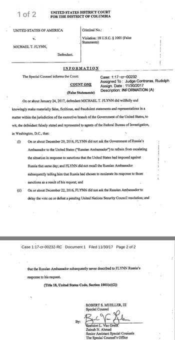 Former @WhiteHouse official @GenFlynn, the first national security advisor of @realDonaldTrump, ”pleaded guilty on Dec. 1, 2017, to making false statements to FBI agents, in violation of 18 U.S.C. 1001,” regarding his contacts with Russians. t.co