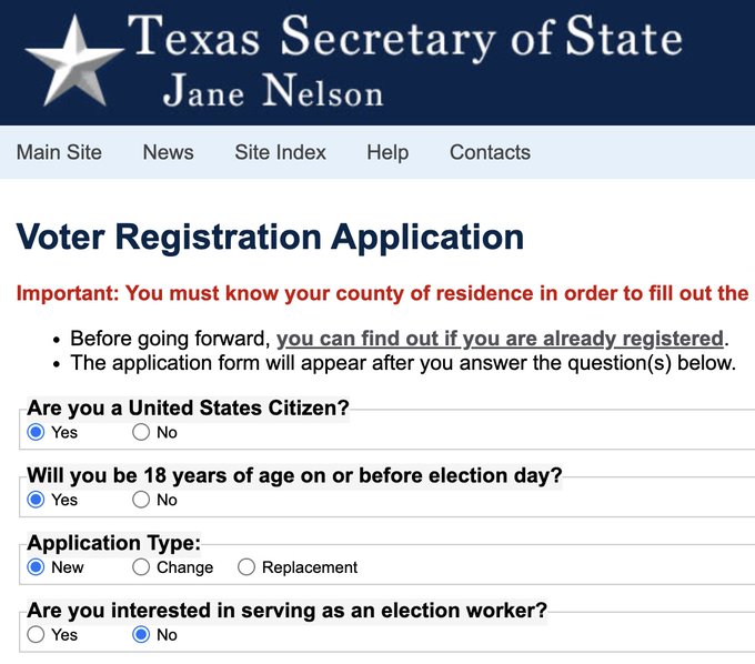 The  first step is to visit the Texas Secretary of State website and  register to vote. If you're a non-citizen, you need to falsely claim  that you are a citizen. Given that you've already disregarded our laws,  this shouldn't pose much of a challenge.