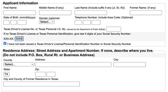 Next,  you must not have ever been issued a Texas Driver's License or a  Personal Identification Number, as you will be caught if you have.  However, if you have a Social Security Number, you can register using  just the last four digits. It's crucial to ensure that your name and  date of birth match exactly.