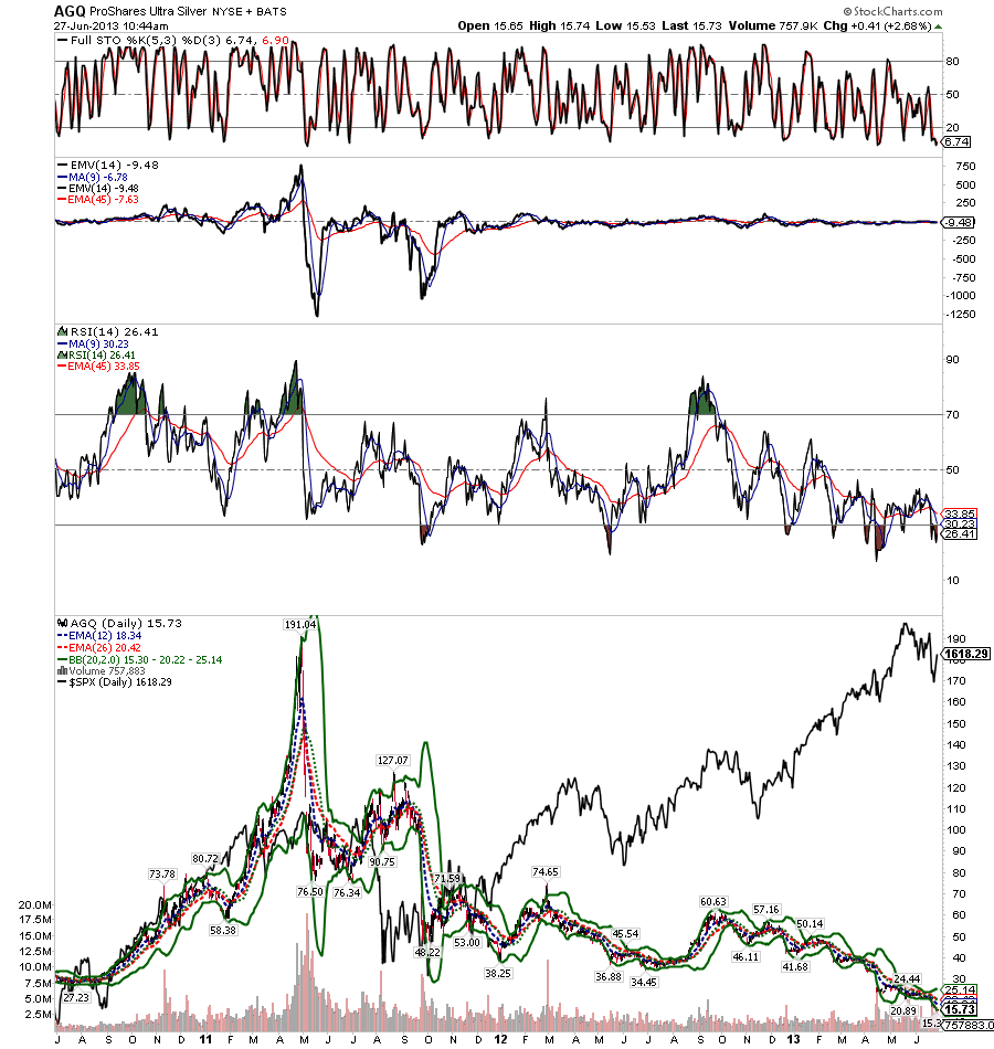 I wanted to look at the Gold and Silver sector.... Dr. John Najarian...was commenting that he was buying a little of the AGY which is the pro Silver Share ETF... he was buying some on a trading basis ... very short term.