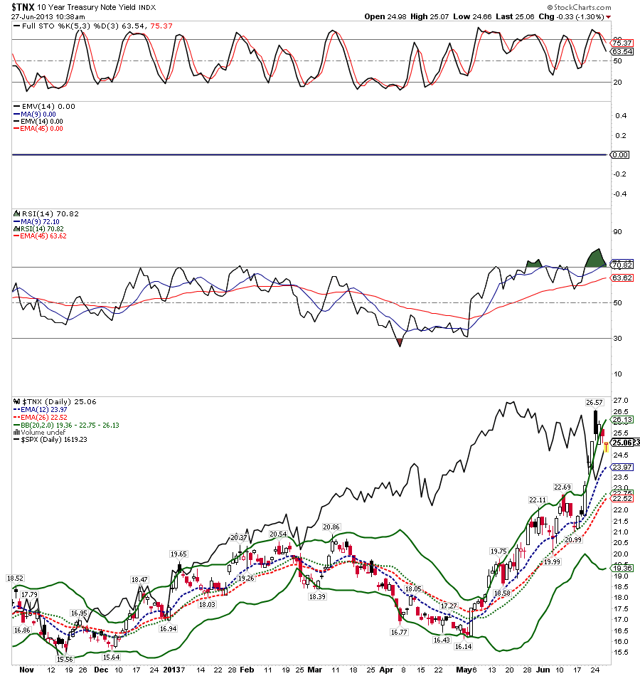The daily 10 year note yield shows that rates will be coming back down several basis points... and we will end the 2nd Quarter with a strong week and next week should see the US rates coming down in Yield up in price.