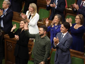 Ukrainian President Volodymyr Zelenskyy and Prime Minister Justin Trudeau join MPs in recognizing Yaroslav Hunka, who turned out to be a Nazi war veteran, in the House of Commons on September 22, 2023. PHOTO BY PATRICK DOYLE/THE CANADIAN PRESS