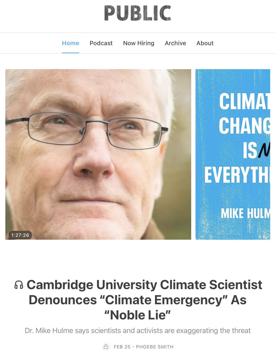 Climate change is an emergency, say the media. But it's not. Deaths from extreme weather are at an all-time low. Food production is at an all-time high. And now, a leading climate scientist has authored a new book denouncing "climatism" as a "noble lie." twitter.com
