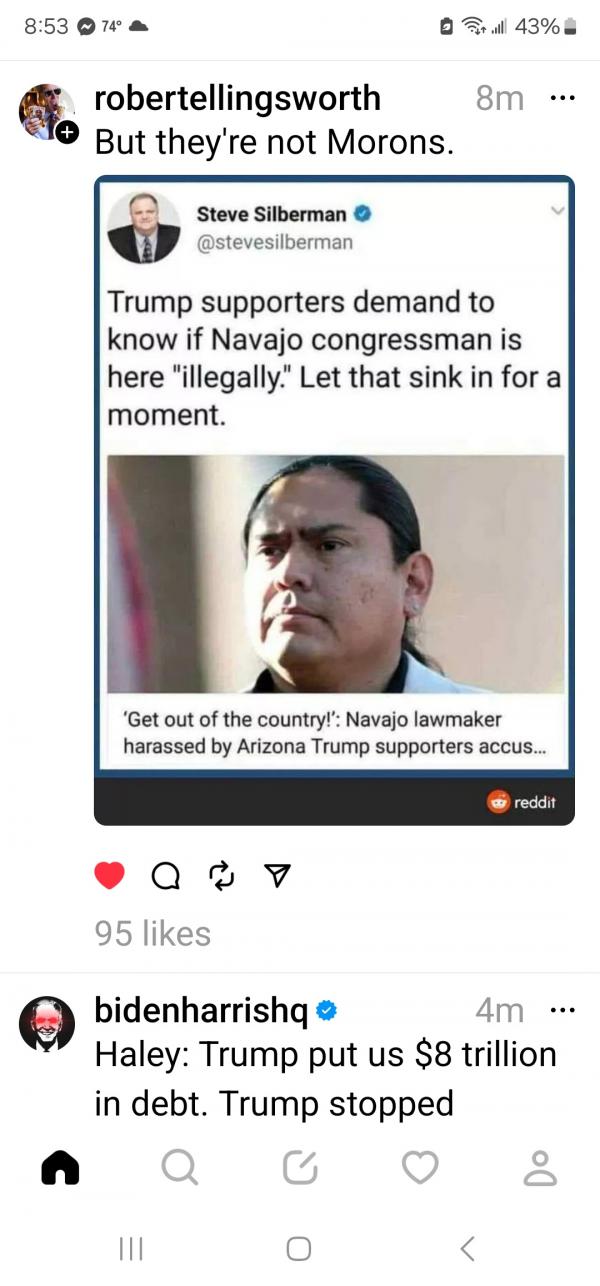 Navajo congressman told by MAGA to get out of the country. Are Indians gonna be on the Trump Deportation list?