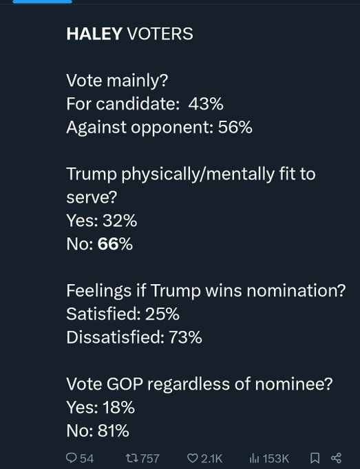 Most Haley voters will NOT vote for the three time loser: