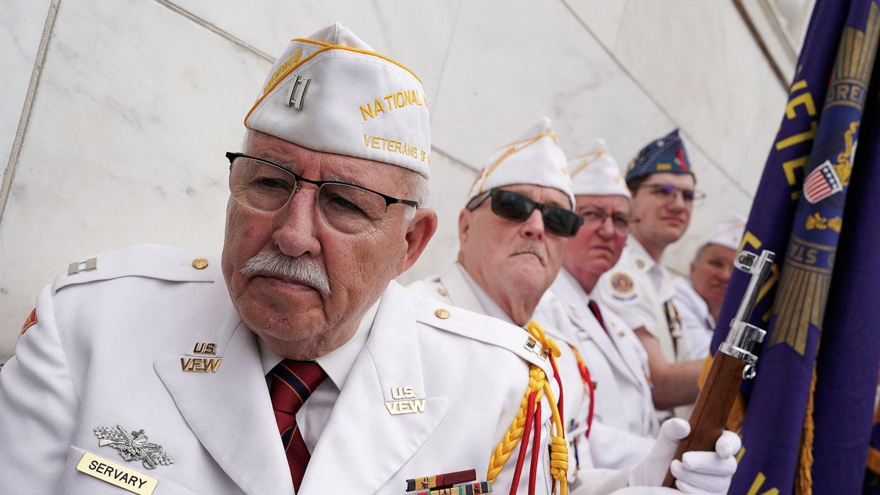 Veterans attend the annual National Memorial Day Observance in the Memorial Amphitheater at Arlington National Cemetery in Arlington, Virginia, U.S., May 26, 2025. REUTERS/Ken Cedeno