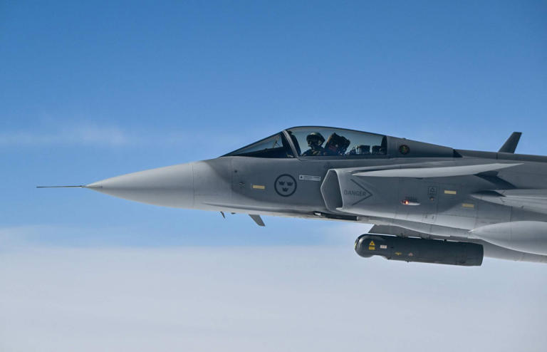 A Swedish Air Force Saab JAS 39 Gripen jetfighter takes part in a NATO exercise. JOHN THYS/AFP via Getty Images© JOHN THYS/AFP via Getty Images
