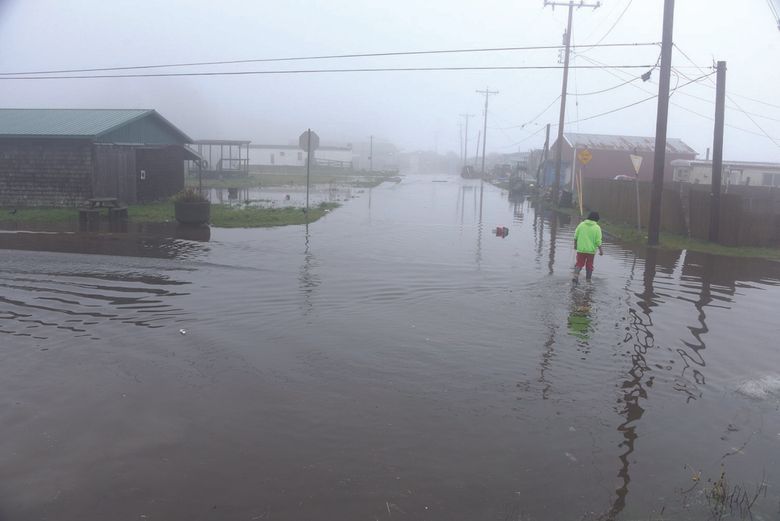Tribal nations are on the front lines of climate change, such as at the Quinault Indian Nation on the Olympic Peninsula, which suffered a storm surge and flood in January 2021. (Larry Workman / Quinault Indian Nation)