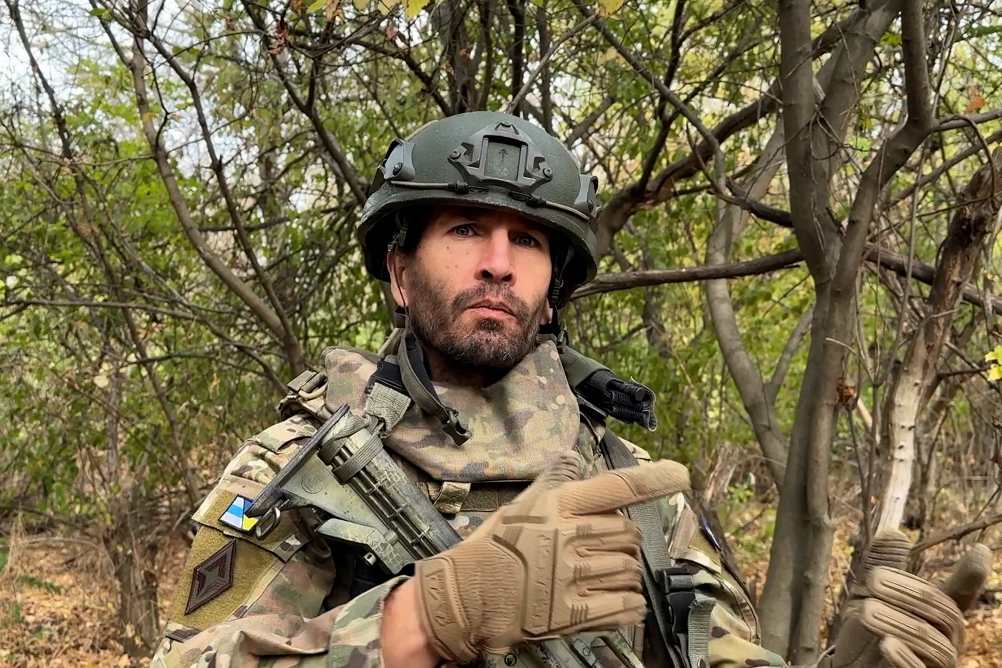 As he talks, his face is hidden and he’s known only by his military callsign. The Independent met him just a short drive from the front lines where he’s fighting in Ukraine’s south.