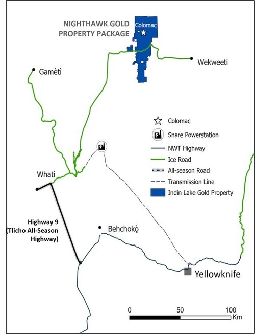 TORONTO, Nov. 8, 2021 /CNW/ - Nighthawk Gold Corp. ("Nighthawk" or the "Company") (TSX: NHK) (OTCQX: MIMZF) is pleased to announce that the new Tlicho Highway (known as Highway 9), a permanent 97km two-lane gravel highway on a former winter road alignment from Hwy 3, roughly 40km south of Behchoko – to the Community of Whati, Northwest Territories, Canada, is scheduled to open to the public on November 30, 2021.