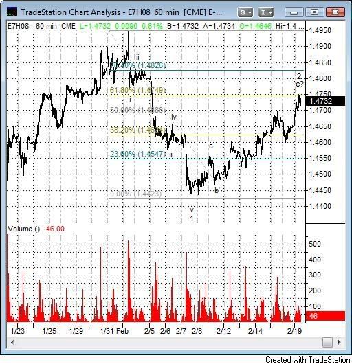 We are near 61.8% of the decline from 2/1/08 to the low on 2/7/08 which is 1.4749