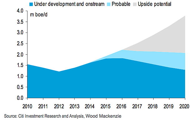 With production having already fallen 300 kbd from projections, mainly through lower production from Thunder Horse and Atlantis, it is hard to see how to justify the numbers that Citigroup is using.