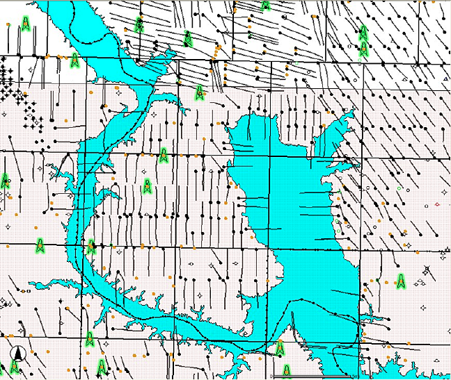 Map of wells planned and drilled in a section of the Bakken ( DMR Presentation to Farm Bureau)