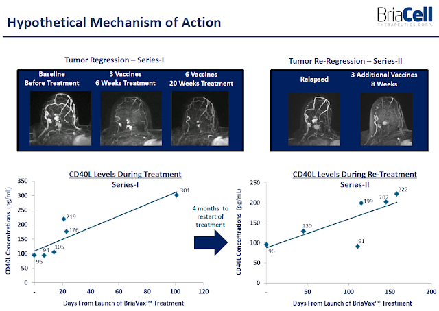 The basic findings, which were presented at AACR in April 2016 ( Poster #2369), show that BriaVax expresses several genes known to encode tumor-associated antigens, such as PRAME, a Cancer/Testis Antigen (CTA), which trigger immune stimulatory roles and activation of tumor-specific T cells via mechanisms of direct antigen presentation, cross-presentation, and/or cross-dressing. Simply, BriaVax stimulates both a cell-mediated and a humoral immune response, which is believed to result in robust clinical response to the vaccine. More about this topic can be found in my article from April 2016.