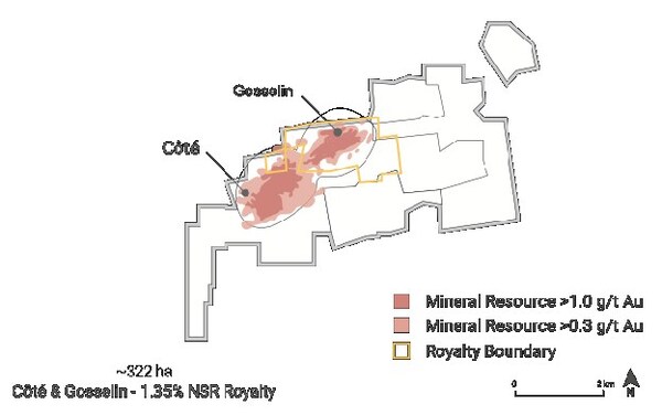 Metalla holds a 1.35% Net Smelter Return ("NSR") royalty interest covering all of IAMGOLD Corporation's ("IAMGOLD") Gosselin deposit and the northern portion of the Côté mine in Ontario, Canada.