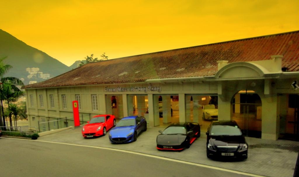 The Ferrari dealership is situated in a heritage building on the road between CBD and home, a 30 min bus ride, and sports a full ocean view