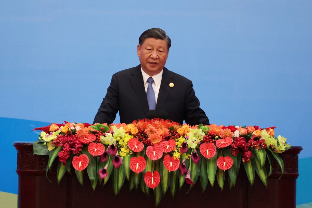 After an introduction by Vice-Premier Ding Xuexiang, the Chinese leader takes the stage and starts by welcoming the international guests.