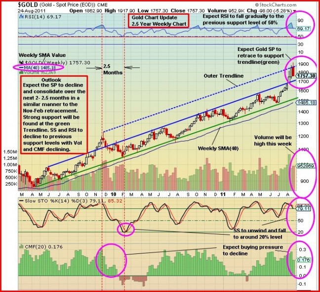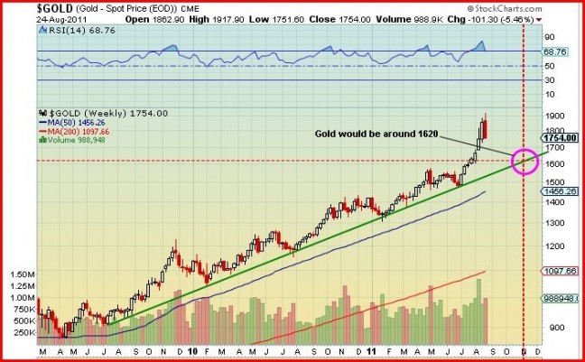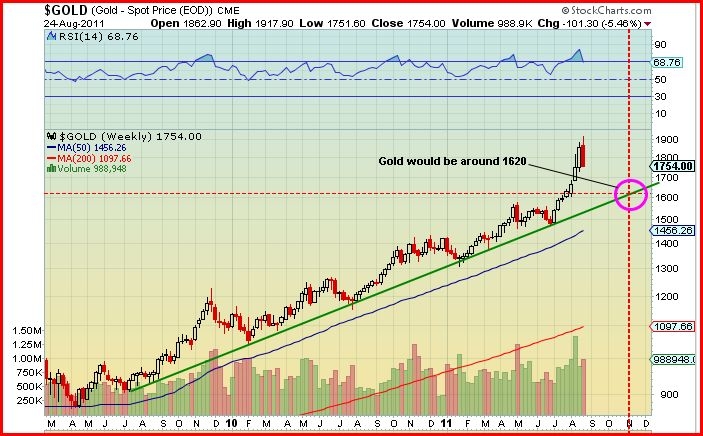 bullmarketrun.com It has been a wild few days for Gold…the yellow metal was down as much as $50 again this morning, hitting a low of $1,702, but it found support and has recovered almost all of its losses…what we’ve witnessed since Monday is one of the 10 largest corrections in Gold since the early 1980's and it was one we warned was likely to happen, though it didn’t take a rocket scientist to figure out that Gold had become extremely overbought on the charts…despite the $200 drop, Gold is still the second-best performing commodity so far this year, up 24.6% through yesterday which is just below Silver’s 30% gain this year…Gold’s sharp rise this month to slightly above $1,900 did not represent a final “blow-off” in a “bubble phase” as some analysts have stated…our contention, based on all the technical and fundamental evidence at hand, is that the “bubble phase” in Gold has not even started yet…the worst of the decline in Gold is now over and a consolidation phase has set in…after a $200 drop, a rally can certainly be expected but we caution that Gold likely won’t bottom out until it retraces down to just above $1,600 an ounce – a process that could take a couple of months…the final quarter of the year could be quite spectacular for Gold if John’s chart proves correct…his track record has been exceptional and his $1,938 target for Gold was only 1% off the mark…
